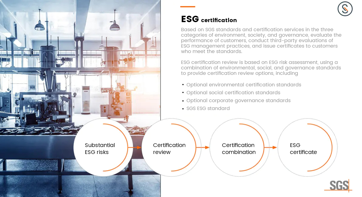 Is coincheap infheistíochta atá ag teacht chun cinn agus caighdeán measúnaithe corparáidí é ESG (gearr ar an gComhshaol, Sóisialta agus Rialachas) a dhíríonn ar fheidhmíocht rialachais chomhshaoil, shóisialta agus chorparáidigh cuideachta seachas ar fheidhmíocht airgeadais agus is féidir léi measúnú a dhéanamh ar chumais inbhuanaitheachta cuideachta.